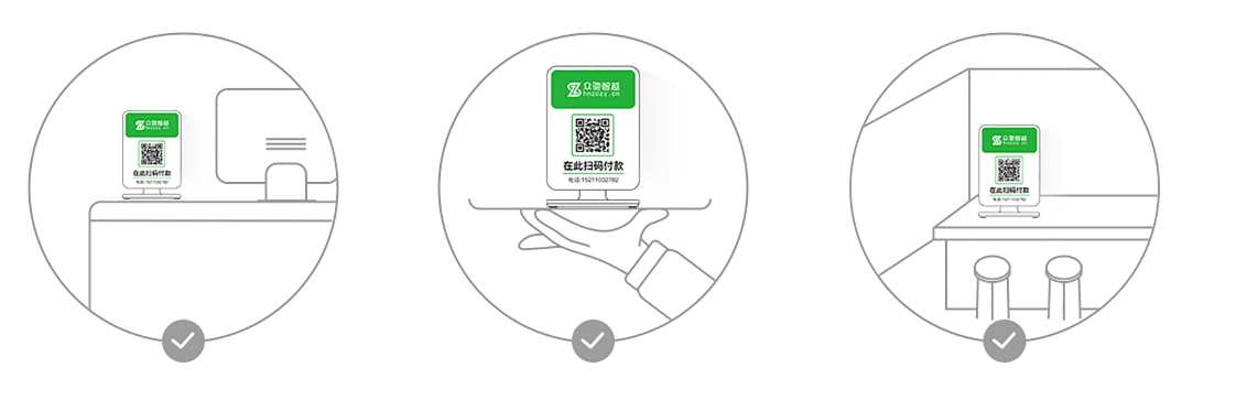 收款码可放置于柜台,也可拿到顾客面前完成收款